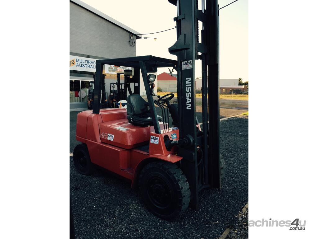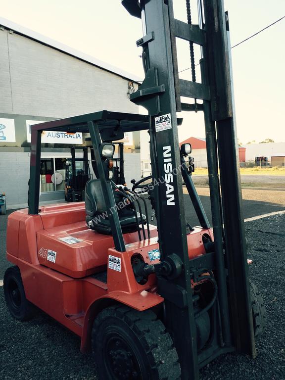 NISSAN 4 TON DIESEL 4TON LIFT CAP, 2 STAGE MAST CLEAR VIEW 4.5 LIFT HEIGHT, SIDE SHIFT, NEAR NEW SOLID TYRES, ONLY 6400HRS SERVICED READY TO GO, CAN TRANSPORT MOST PLACES AUSTRALIA WIDE PH FOR TRANSPORT QUOTE, WE ARE FAMILY OWNED BUSINESS WITH 30 YEARS KNOWLEDGE,