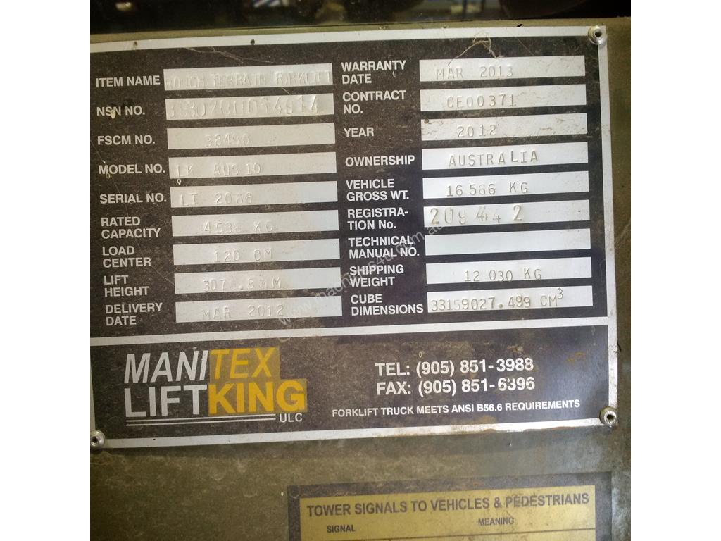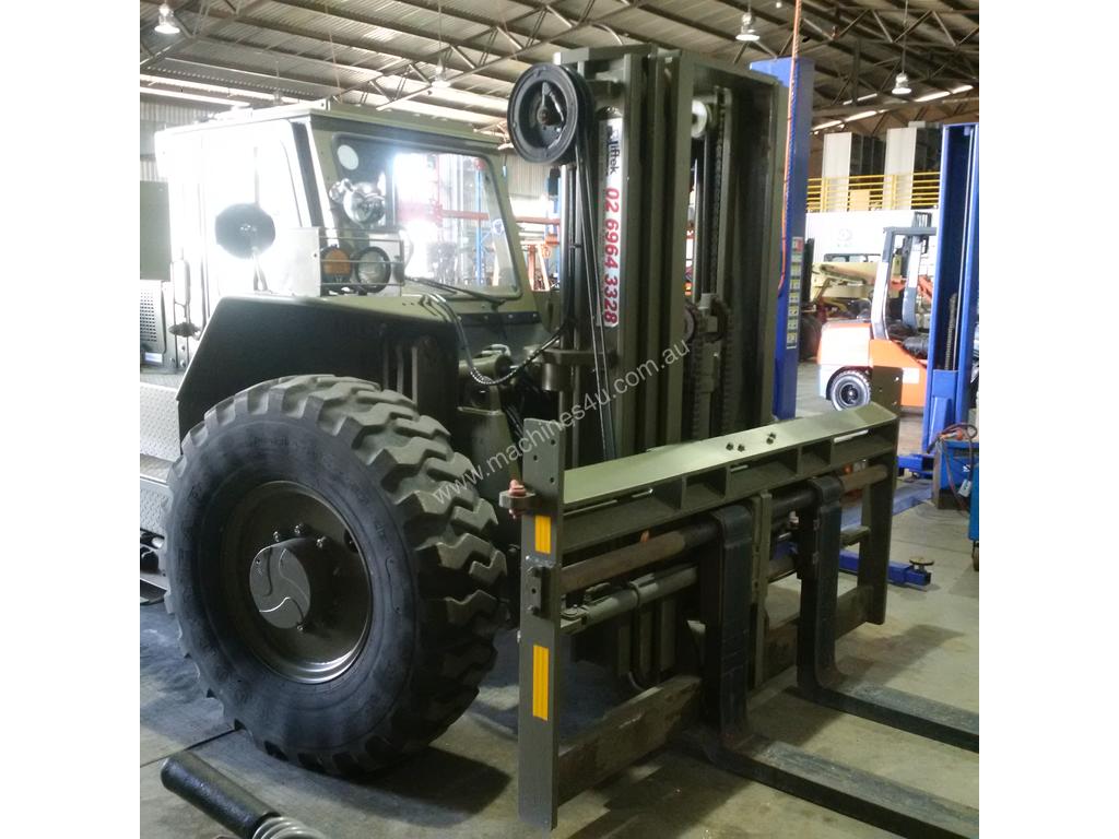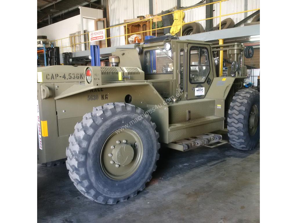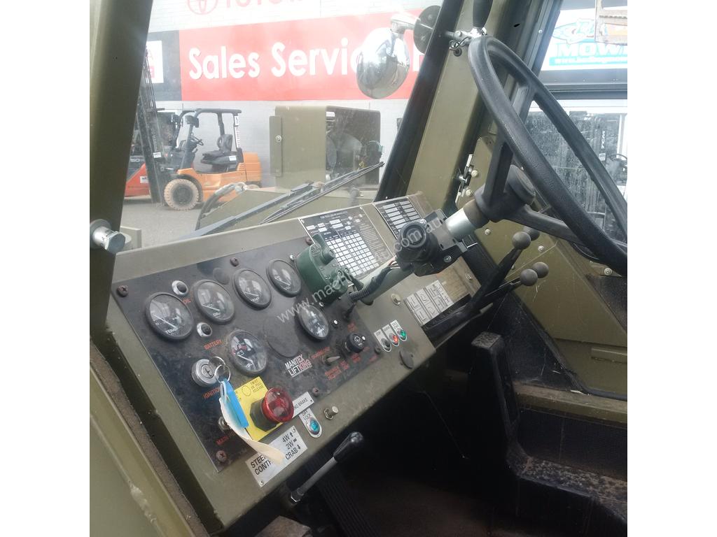 3 STAGE MAST (CONTAINER MAST) 3.7 LIFT HEIGHT, SIDE SHIFT +HYDRAULIC FORK POSITION 4WD AND 4X WHEEL STEERING NEW PNUEMATIC TYRES, HAS ONLY 200 HOURS 2012 PLATE UNIT