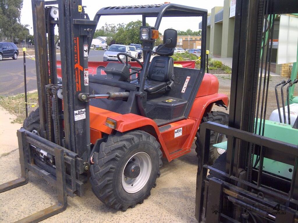 GREAT RELIABLE MACHINE 3 TON LIFT CAP, 3 STAGE MAST , SIDE SHIFT , ROUGHT TERRAI....
